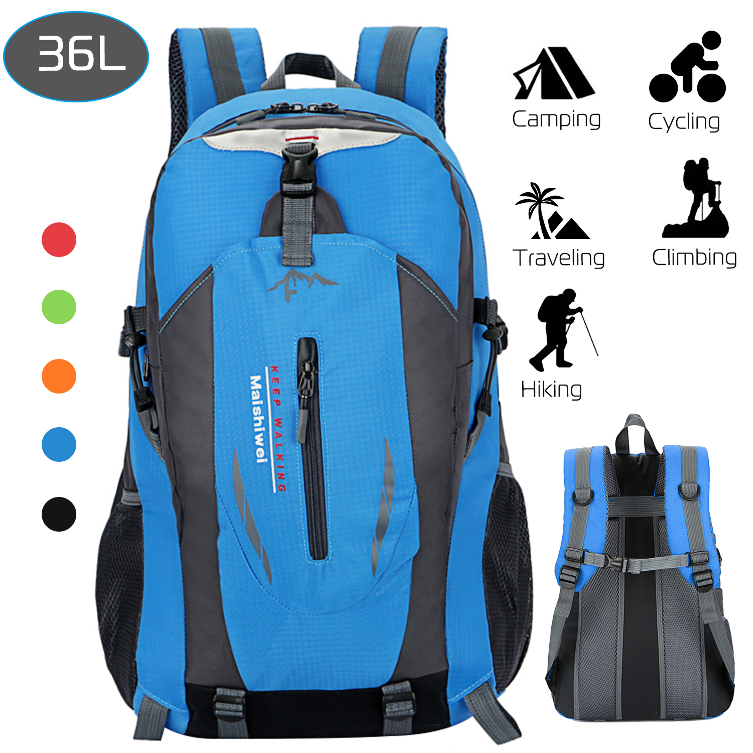 • *Soft Light Weight But 36L Capability*:Coming with a weight of around .51kg/1.12lbs,the outdoor backpack has a light weight but it has 36L capability for holding your personal belongings as much as possible when you are traveling,going hiking,climbing,cycling and so on.