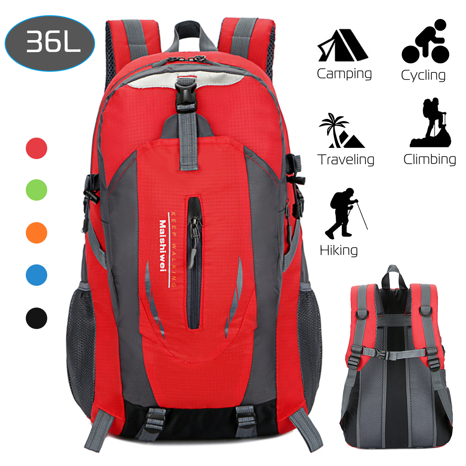 • *Soft Light Weight But 36L Capability*:Coming with a weight of around .51kg/1.12lbs,the outdoor backpack has a light weight but it has 36L capability for holding your personal belongings as much as possible when you are traveling,going hiking,climbing,cycling and so on.